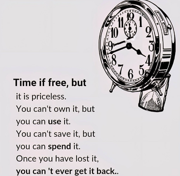 “The biggest mistake we make in our lives is thinking that we have time. Time is free but it is priceless. You can’t own it but you can use it. You can’t save it but you can spend it. Once you have lost it, you can’t ever get it back.”